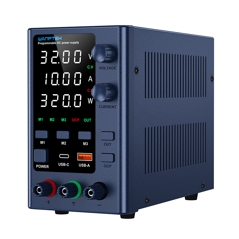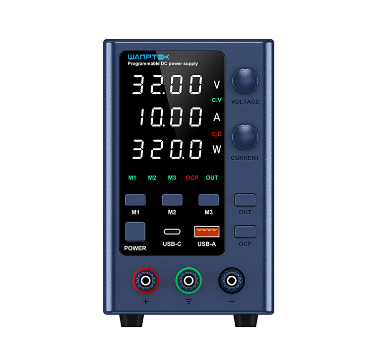 EPS系列产品是三窗口四位数显程控直流稳压电源,带数据存储功能,可同时显示电压,电流,功率。产品广泛应用于手机维修、电脑维修、电池充电、学校教学和生产线使用。使用编码电位器可以在0和标称值之间连续调节输出电压和输出电流,并且可以预先显示设定值,方便使用和调节。本机具有USB-A和Type-C快速充电接口,支持多种快速充电协议。具有完美的OVP、OCP短路保护电路,该产品还提供上位机通信功能 (可选),方便用户使用USB或RS485连接线将电源与PC连接,也可以通过不同的转换线实现USB转RS232/485接口,即可通过软件界面控制电源使用,实现远程操作。电源的稳定性和纹波系数非常好。其体积小,设计美观,操作方便,满负荷可长时间工作,深受用户喜爱。