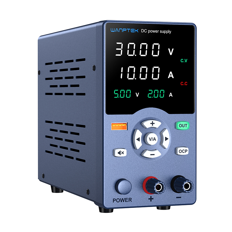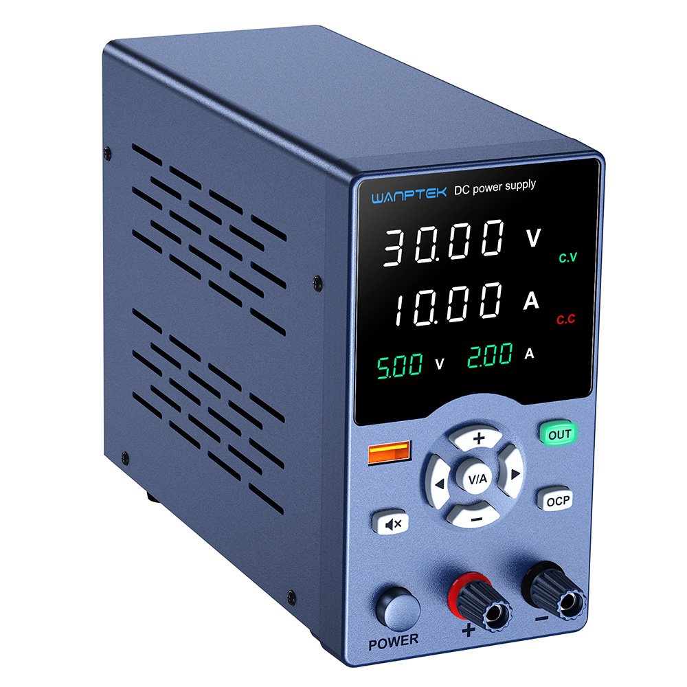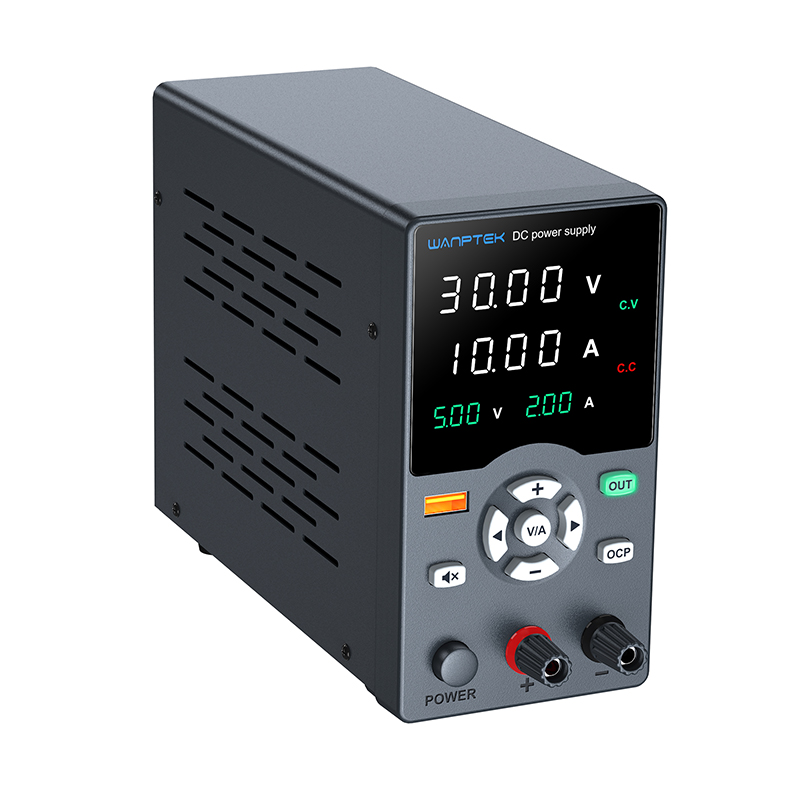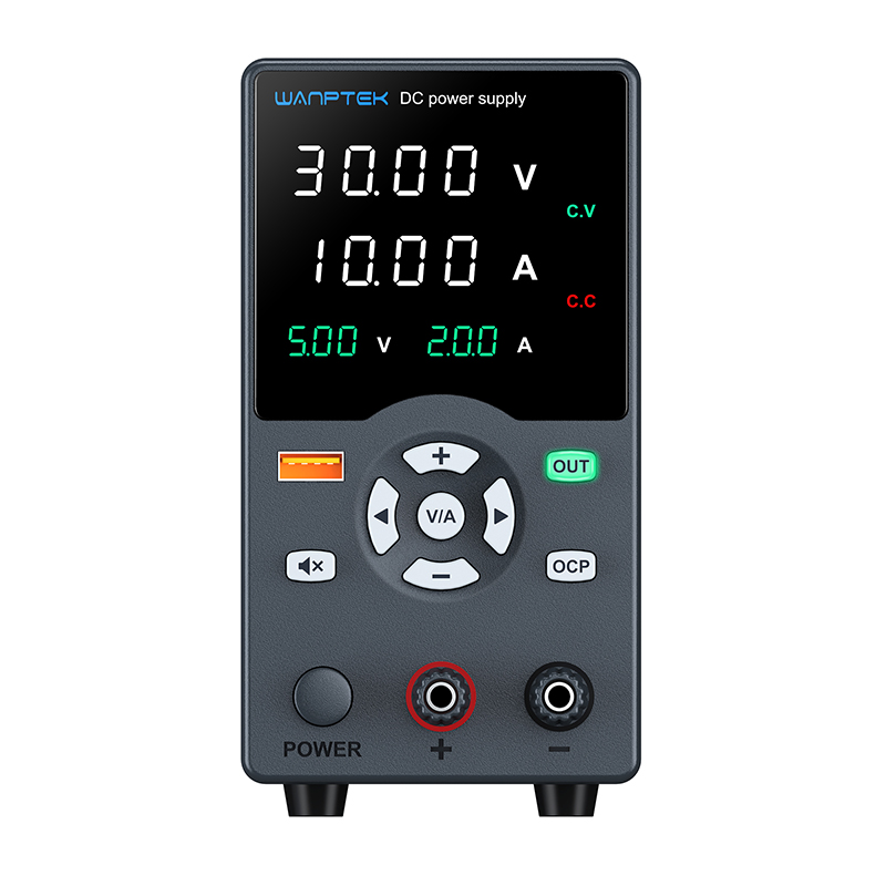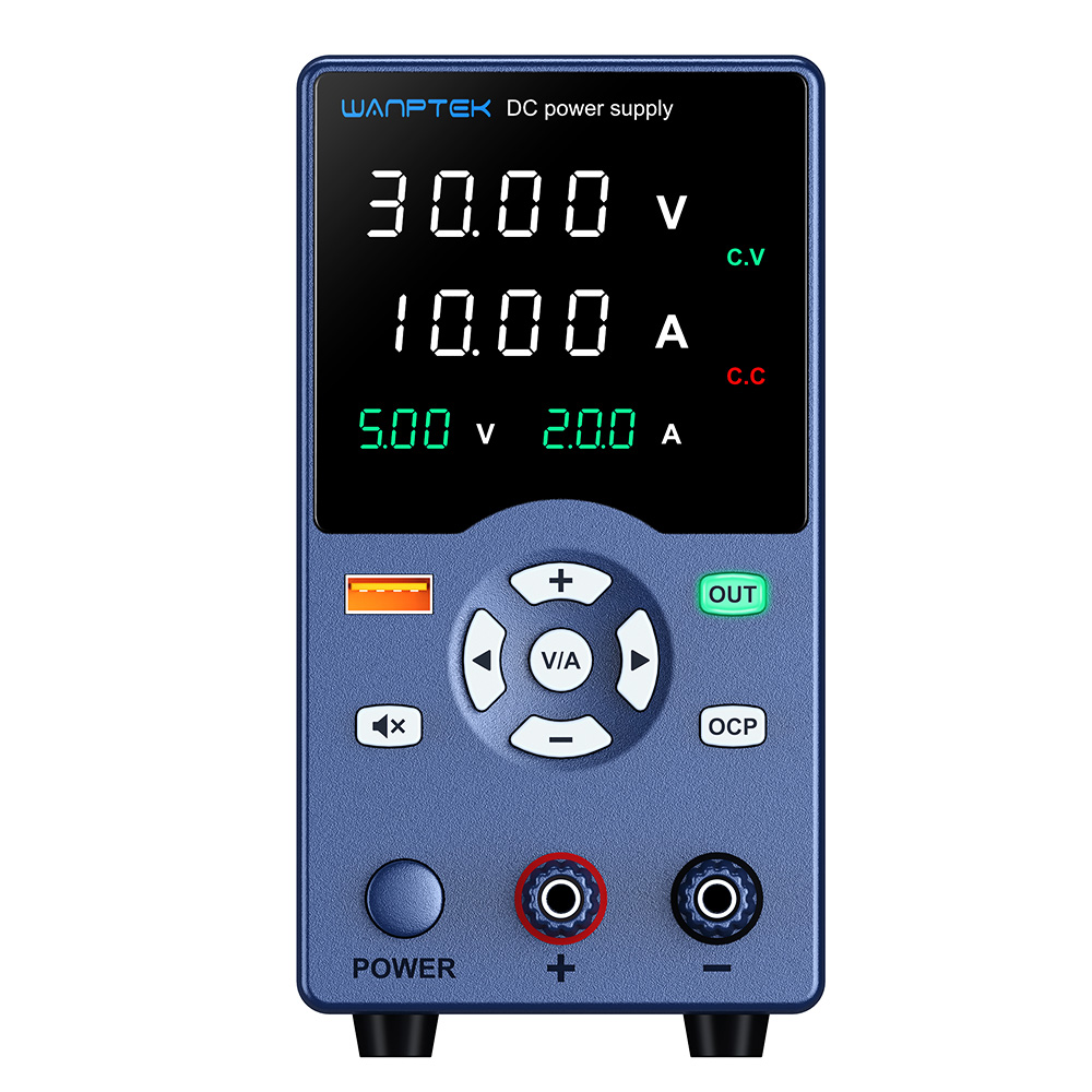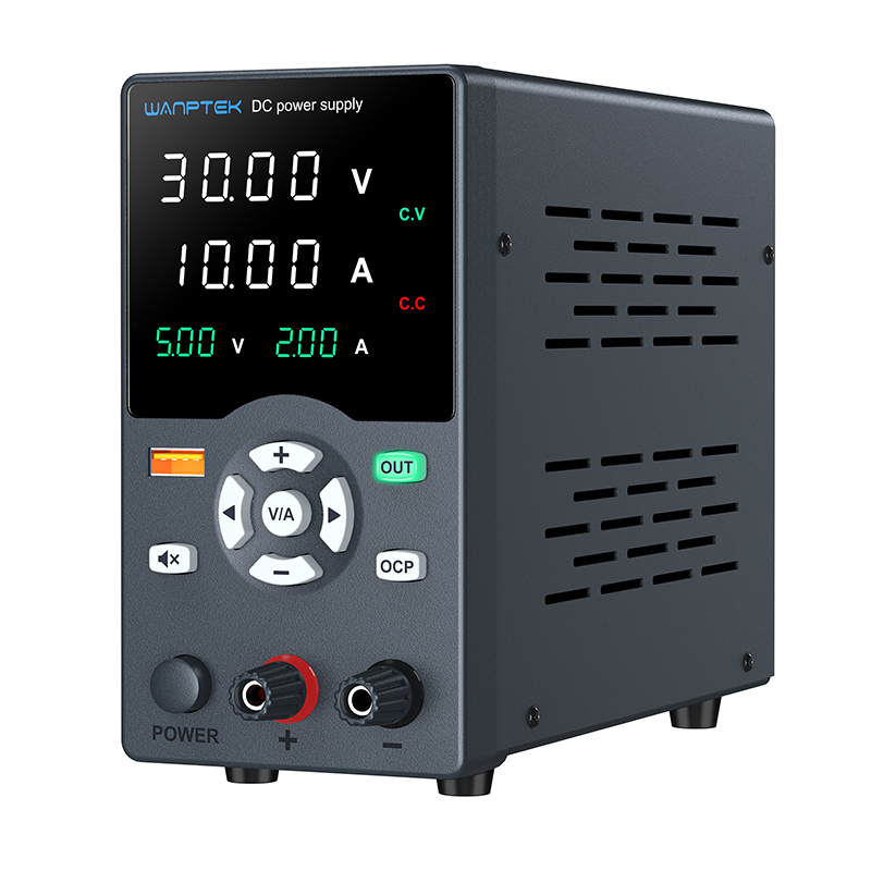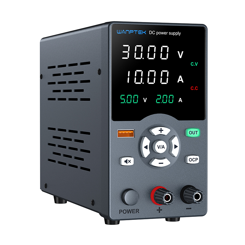 GC系列产品是四窗口双色数显开关直流稳压电源,带有USB快充输出显示,可同时显示电压和电流。产品广泛应用于手机维修、电脑维修、电池充电、学校教学和生产线使用。GC系列产品使用全按键调节,在0和标称值之间连续调节输出电压和输出电流 , 可以预先显示设定值,方便使用和调节。本机具有USB快速充电接口带输出显示,支持多种快速充电协议。具有完美的短路保护电路。电源的稳定性和纹波系数都非常好,其体积小、重量轻、设计美观、操作方便,满负荷可长时间工作,深受用户喜爱。