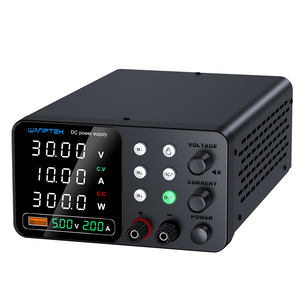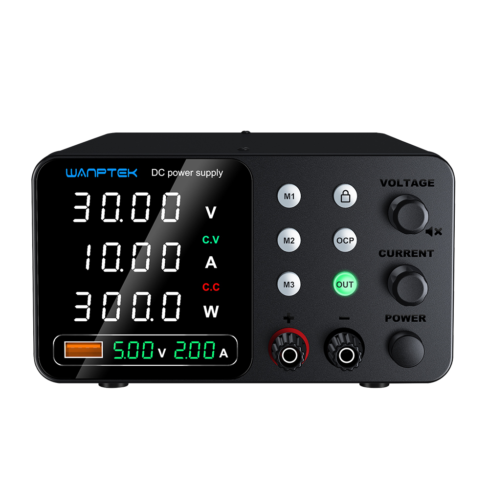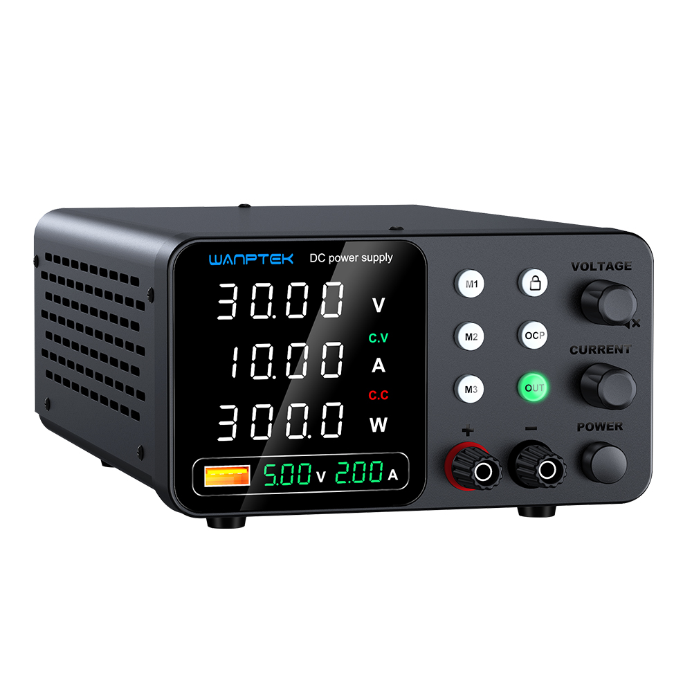 TPS-C系列产品是五窗口双色数显可调直流稳压电源,USB快充输出带电压电流显示功能,三组数据存储功能,可同时显示电压,电流,功率。产品广泛应用于手机、电脑、电器维修、电池充电、学校教学、实验测试和生产线使用等。使用编码电位器可以在0和标称值之间连续调节输出电压和输出电流,并且可以预先显示设定值,方便使用和调节。本机具有USB快充输出带显示功能,支持多种快速充电协议。具有完美的OVP、OCP短路保护电路,电源的稳定性和纹波系数非常好。其体积小,重量轻,设计美观,操作方便,满负荷可长时间工作,深受用户喜爱。